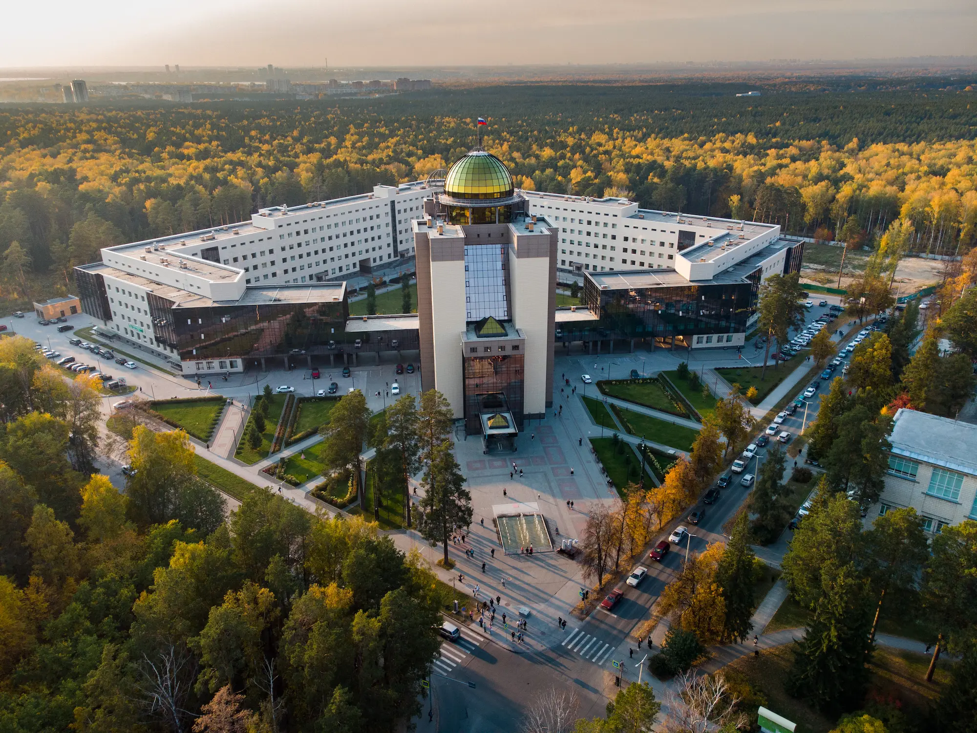 Начинайте прогулку с НГУ. Посидите во внутреннем дворике, когда тепло, пройдитесь по тропинкам старого Главного корпуса или студгородку с общежитиями. В университет попасть не получится, но можно взять экскурсию на крышу-купол и с высоты посмотреть на Академ.