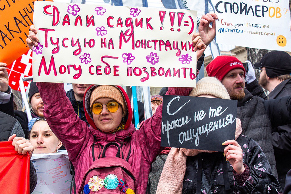 За 15 лет на плакатах монстрантов появлялись и отвлеченные мемы вроде «Услуги ктулху на час», «Если не я, то кот», и политические: «У России два врага: чернослив и курага» или «Тут что, согласованная монстрация что ли?».