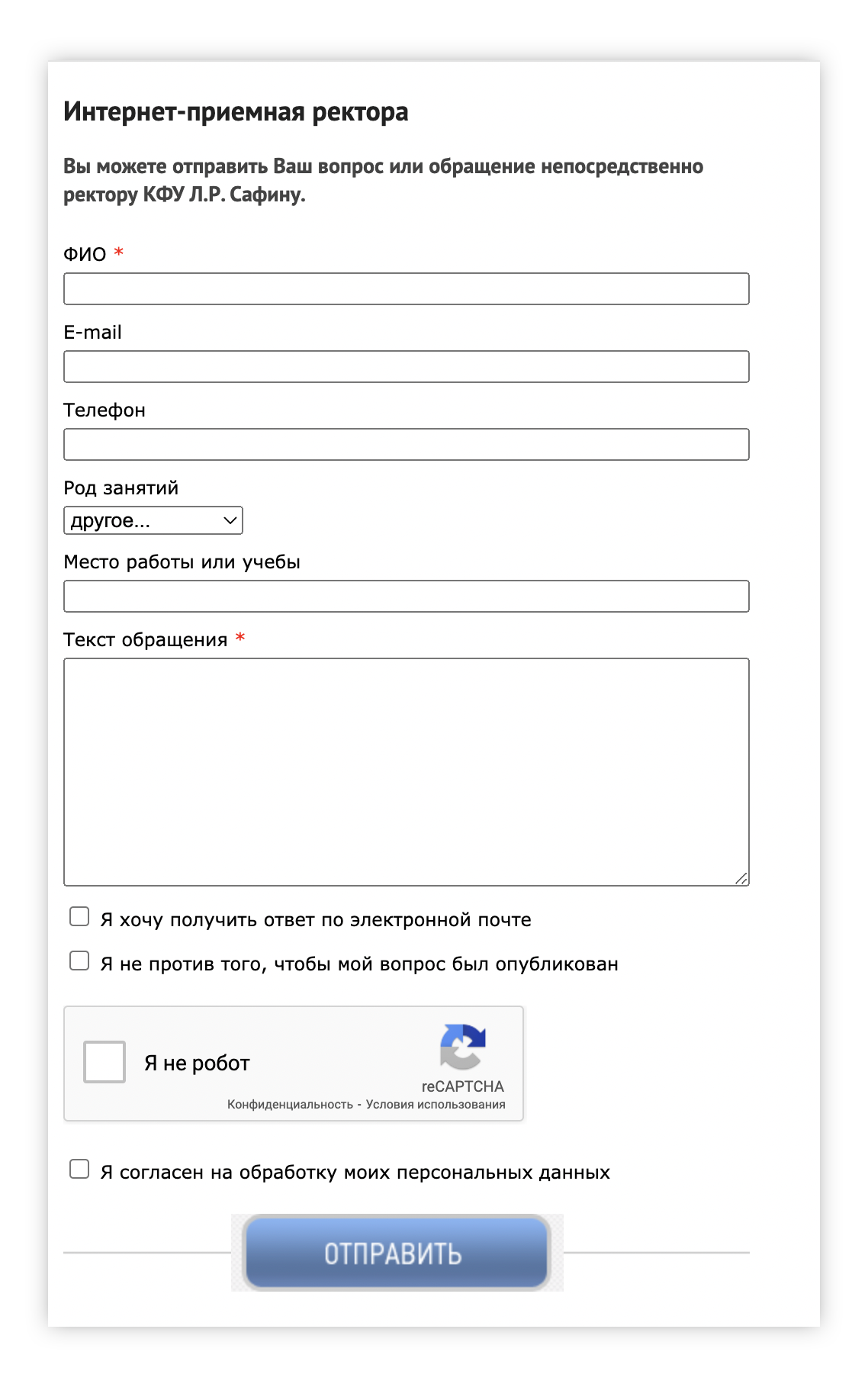 Как обратиться. Жалобу можно отправить через форму на сайте Минобра. Обращаться лучше после того, как вы уже получили неудовлетворительный ответ от ректора — так министерство будет знать, что проблему не удалось решить на локальном уровне и не перешлет ваше обращение обратно в учебное заведение.